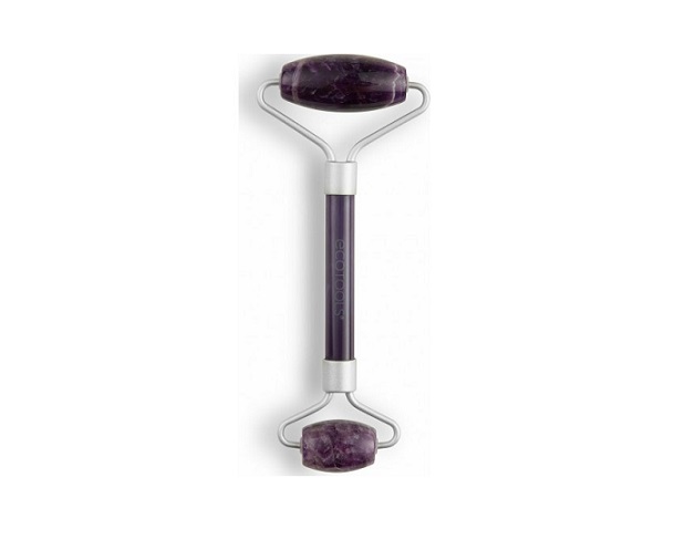 Customize your routine by storing this roller in the refrigerator to help de-puff or running it under warm water to help open pores. Amethyst is used to help reduce stress.
