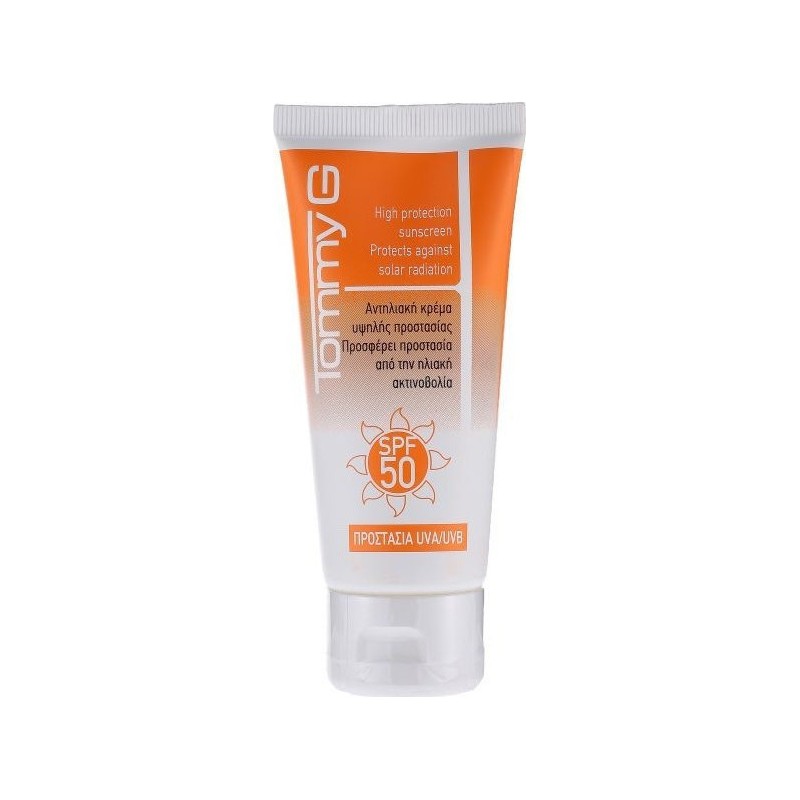 Αντηλιακή κρέμα SPF 50 με Βιταμίνη Ε, Γλυκερίνη και Ουρία που ενυδατώνει, θρέφει και προστατεύει το δέρμα από τις βλαβερές ακτίνες UV ενώ παρέχει αντι γήρανση και αντιοξειδωτική δράση.